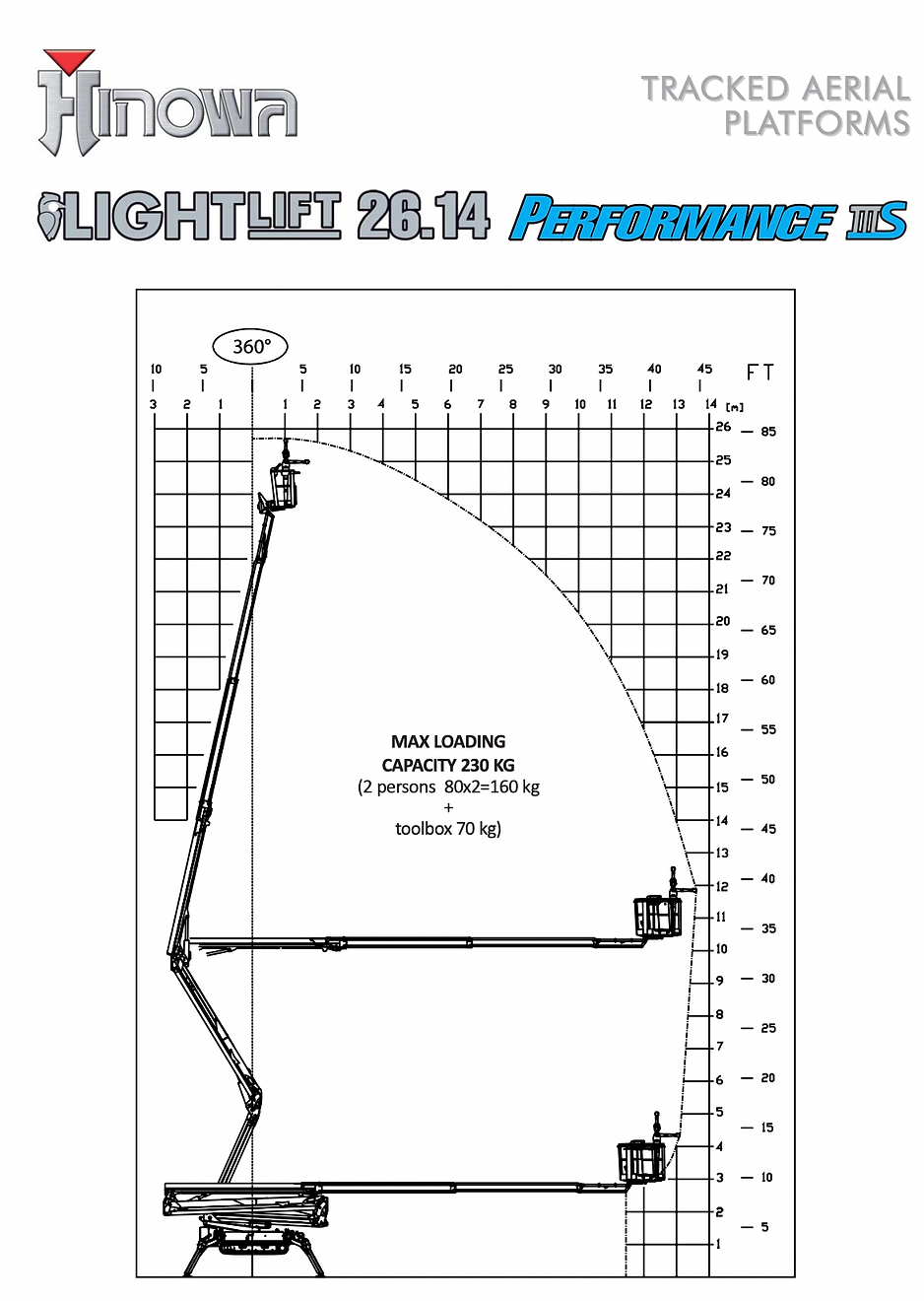 Un encombrement minimum, et un déport maximum. Compacte et légère, elle est simple à utiliser dans toutes les situations grâce à sa stabilité en hauteur incomparable. Ses points forts : une stabilisation très-compacte et aucun encombrement en rotation. Elle est agile et stable sur chenilles. Grâce à un dispositif automatique de contrôle du déport, le système s’occupe d’augmenter ou réduire le déport en fonction de la charge dans le panier. La rotation de la tourelle de 360° permet au bras équipé du jib un travail dans toutes les conditions puisque il n’y pas de porte-à- faux par rapport à la stabilisation. Le concept de fabrication se base sur une simple télécommande contrôlée par câble pour le déplacement. Chaque élément de la nacelle à été fabriqué et peint précisément pour vous fournir la meilleure qualité. Le châssis chenillé peut être livré avec élargissement hydraulique contrôlé par un distributeur manuel de commande (option). En quelques secondes il est possible de monter et démonter le panier en aluminium très léger.
