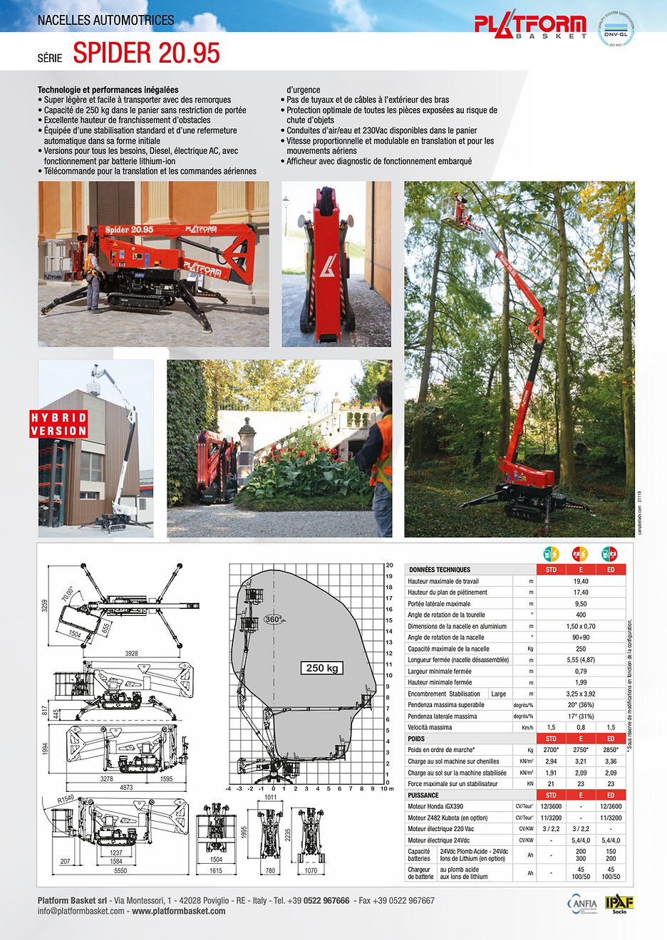 Un encombrement minimum, et un déport maximum. Compacte et légère, elle est simple à utiliser dans toutes les situations grâce à sa stabilité en hauteur incomparable. Ses points forts : une stabilisation très-compacte et aucun encombrement en rotation. Elle est agile et stable sur chenilles. Grâce à un dispositif automatique de contrôle du déport, le système s’occupe d’augmenter ou réduire le déport en fonction de la charge dans le panier. La rotation de la tourelle de 360° permet au bras équipé du jib un travail dans toutes les conditions puisque il n’y pas de porte-à- faux par rapport à la stabilisation. Le concept de fabrication se base sur une simple télécommande contrôlée par câble pour le déplacement. Chaque élément de la nacelle à été fabriqué et peint précisément pour vous fournir la meilleure qualité. Le châssis chenillé peut être livré avec élargissement hydraulique contrôlé par un distributeur manuel de commande (option). En quelques secondes il est possible de monter et démonter le panier en aluminium très léger.