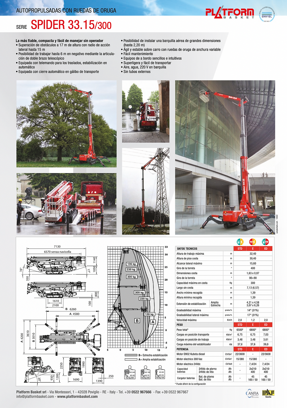 Un encombrement minimum, et un déport maximum. Compacte et légère, elle est simple à utiliser dans toutes les situations grâce à sa stabilité en hauteur incomparable. Ses points forts : une stabilisation très-compacte et aucun encombrement en rotation. Elle est agile et stable sur chenilles. Grâce à un dispositif automatique de contrôle du déport, le système s’occupe d’augmenter ou réduire le déport en fonction de la charge dans le panier. La rotation de la tourelle de 360° permet au bras équipé du jib un travail dans toutes les conditions puisque il n’y pas de porte-à- faux par rapport à la stabilisation. Le concept de fabrication se base sur une simple télécommande contrôlée par câble pour le déplacement. Chaque élément de la nacelle à été fabriqué et peint précisément pour vous fournir la meilleure qualité. Le châssis chenillé peut être livré avec élargissement hydraulique contrôlé par un distributeur manuel de commande (option). En quelques secondes il est possible de monter et démonter le panier en aluminium très léger.