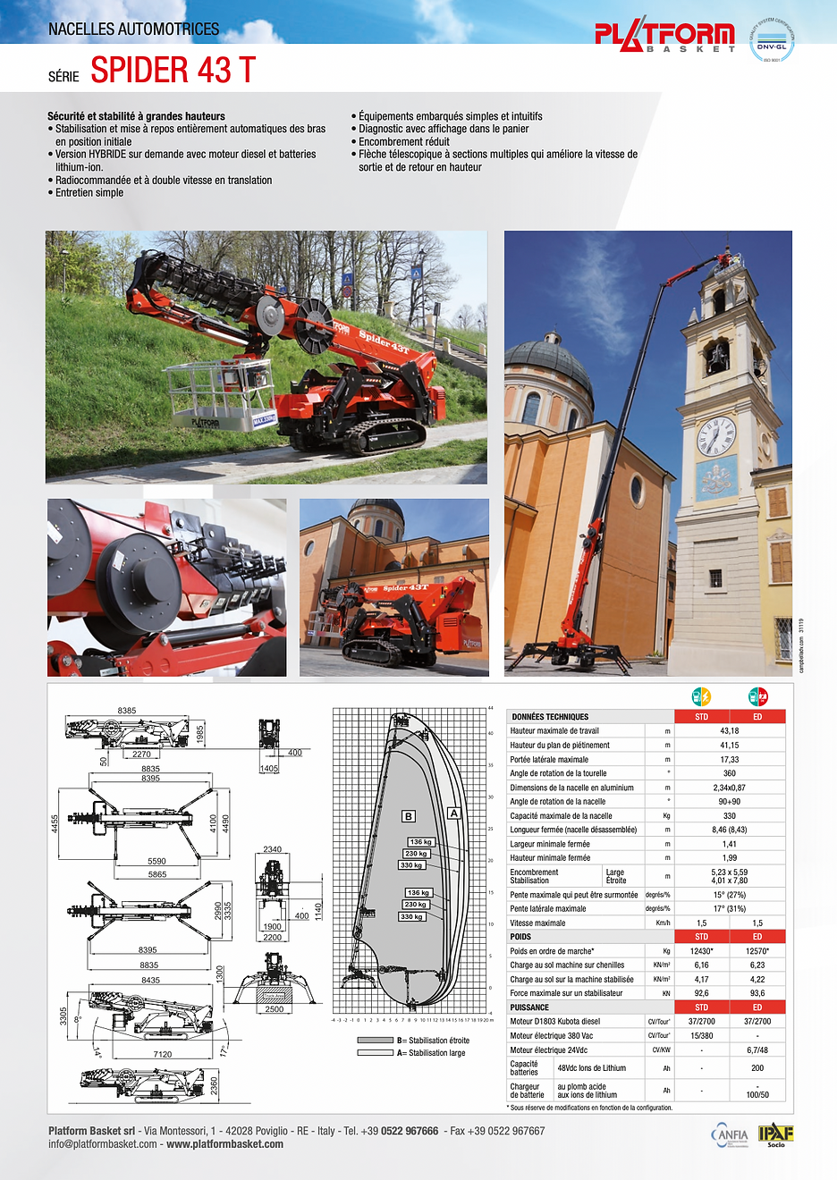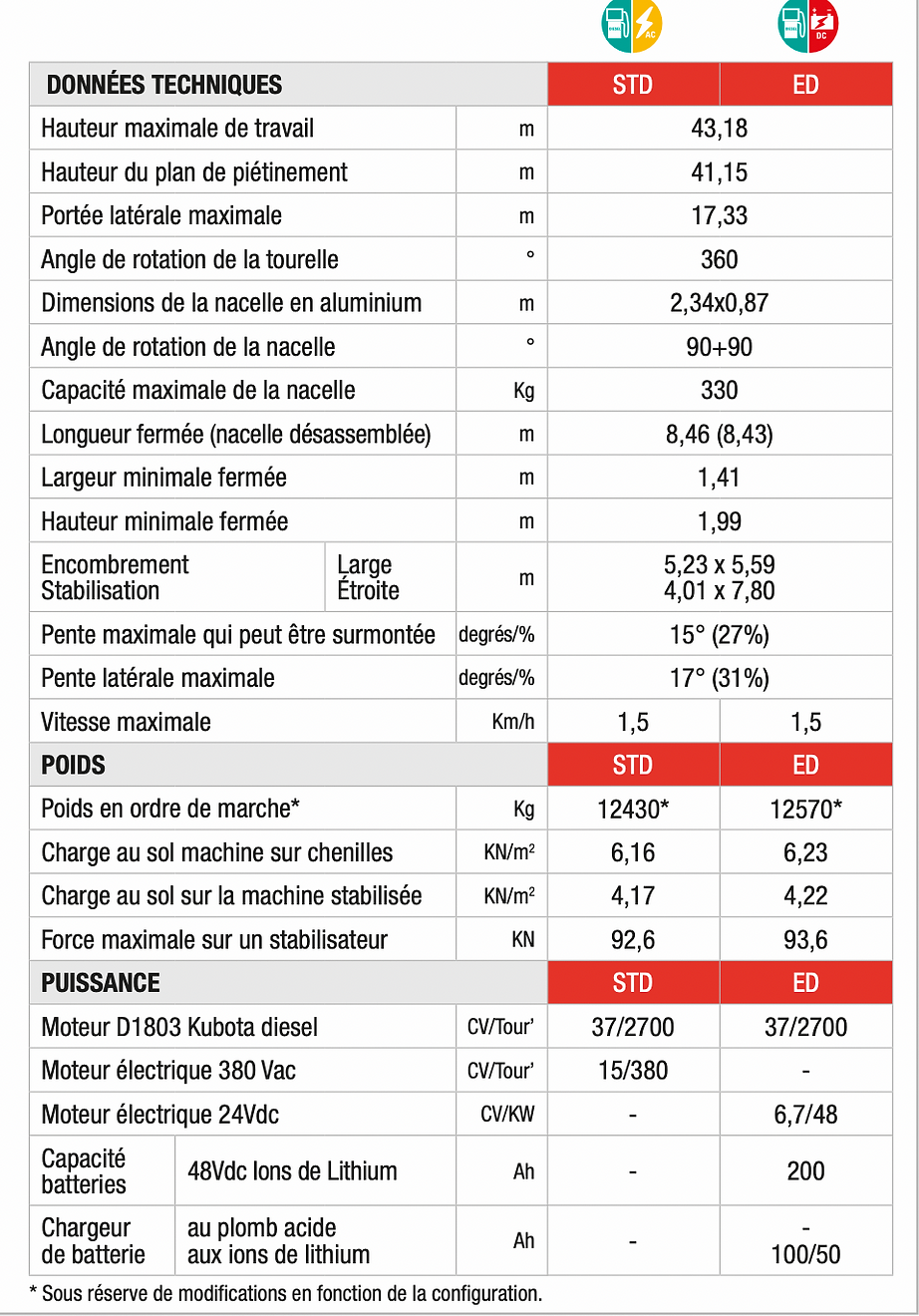 Hauteur de travail : 43 m